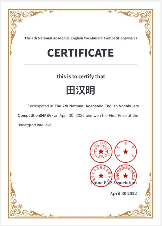 日前,由中国学术英语教学研究会和复旦大学出版社联合主办的“第七届全国大学生学术英语词汇竞赛”圆满落幕,我校学子再创佳绩,其中田汉明、苏凌钰、张超等17人荣获一等奖。华体会在线(中国)牵头组织了大赛在我校的相关赛事活动,曲园学术英语协会协办。