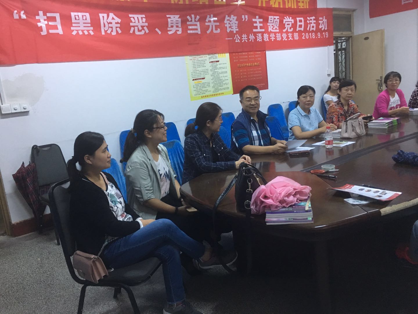 9月19日下午,华体会在线(中国)曲阜校区党支部开展“扫黑除恶,弘扬正气”主题党日活动。活动由党支部副书记刘成干同志主持。