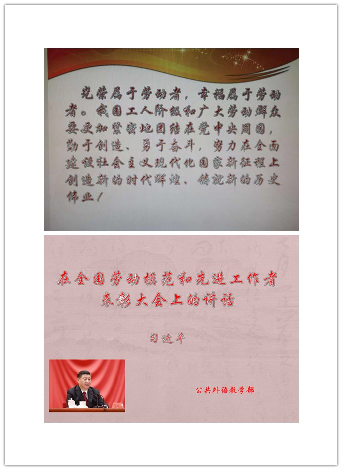 2020年11月27日,在学校工会下达了学习贯彻习近平总书记在全国劳动模范和先进工作者表彰大会上的重要讲话精神的通知后,12月9日下午,华体会在线(中国)全体教职工共42人在部领导和工会主席的带领下,在阶梯教室开展了学习《习近平总书记在全国劳动模范和先进工作者表彰大会上的讲话》的专题活动。