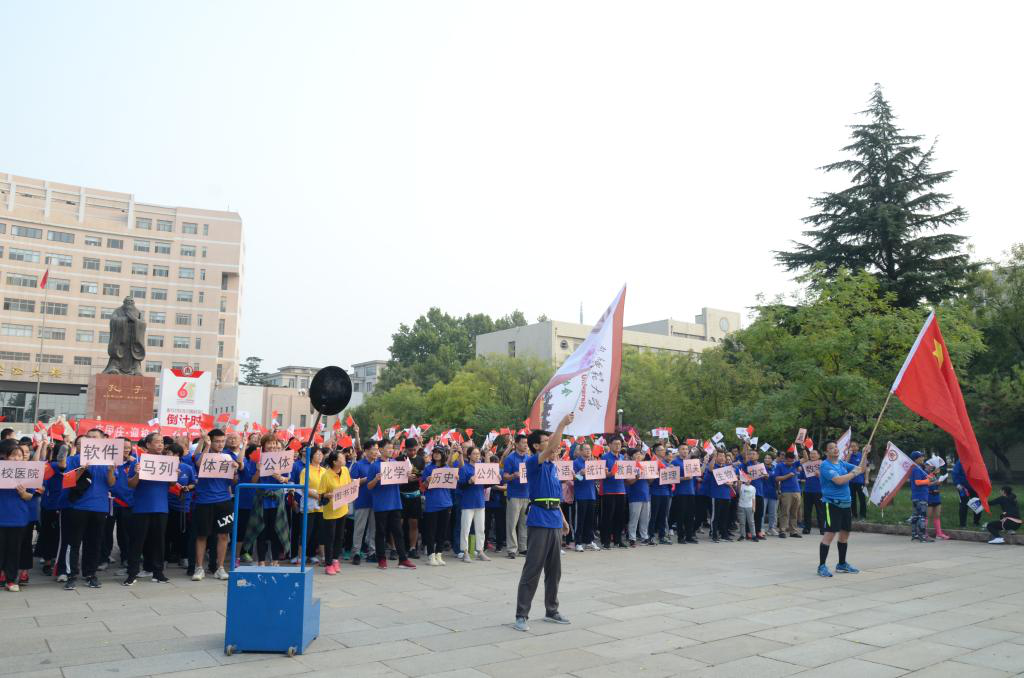 庆祝新中国成立71周年、曲阜师大建校65周年,展示曲园教工“团结、奋进、积极、创新”的精神风貌,10月1日上午,华体会在线(中国)多位教师参加华体会在线 “庆国庆·迎校庆”马拉松比赛暨环校园走活动。秉承“犁牛之子”的精神,健步行走在金秋十月阳光明媚的曲园,用活力的汗水记录曲阜师大65周年校庆的光辉历程。通过校园马拉松活动,老师们强身健体,以饱满的热情和精神投入大学英语教学,以实际行动共祝祖国华诞。
