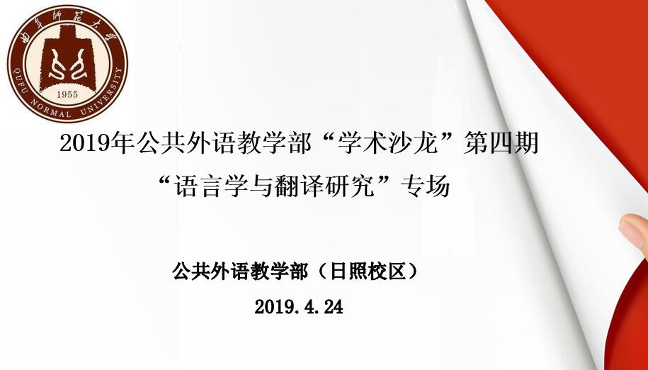 4月24日下午,华体会在线(中国)2019年第四期“学术沙龙”在日照校区JC1002会议室举行。本期沙龙主题为语言学与翻译研究。沙龙活动由孙伟老师主持,全体教师参加了研讨。