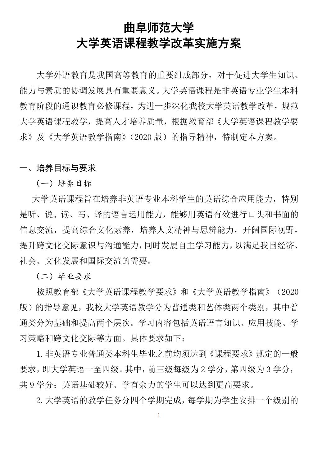 华体会在线《大学英语》课程教学改革实施方案(2022版)