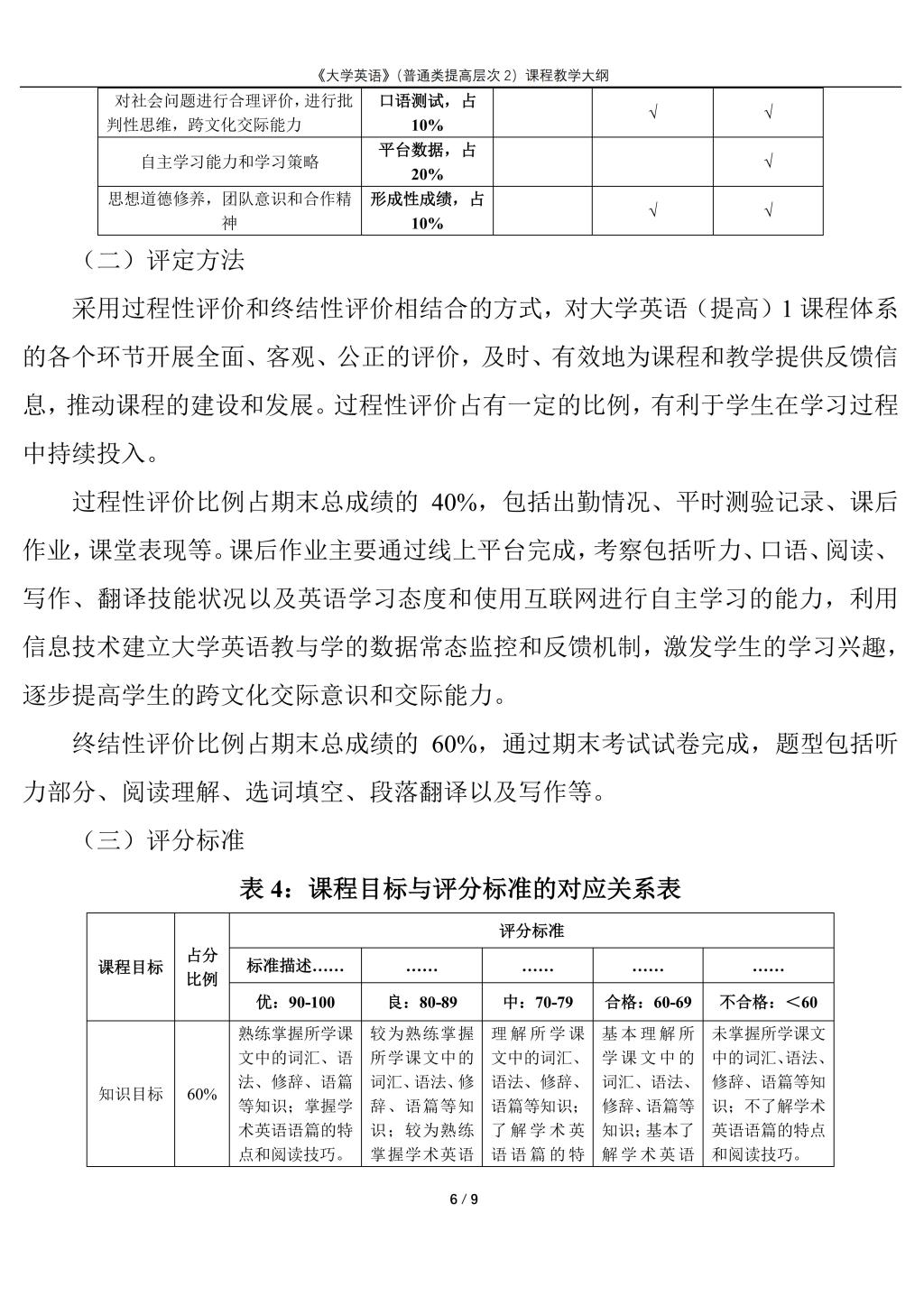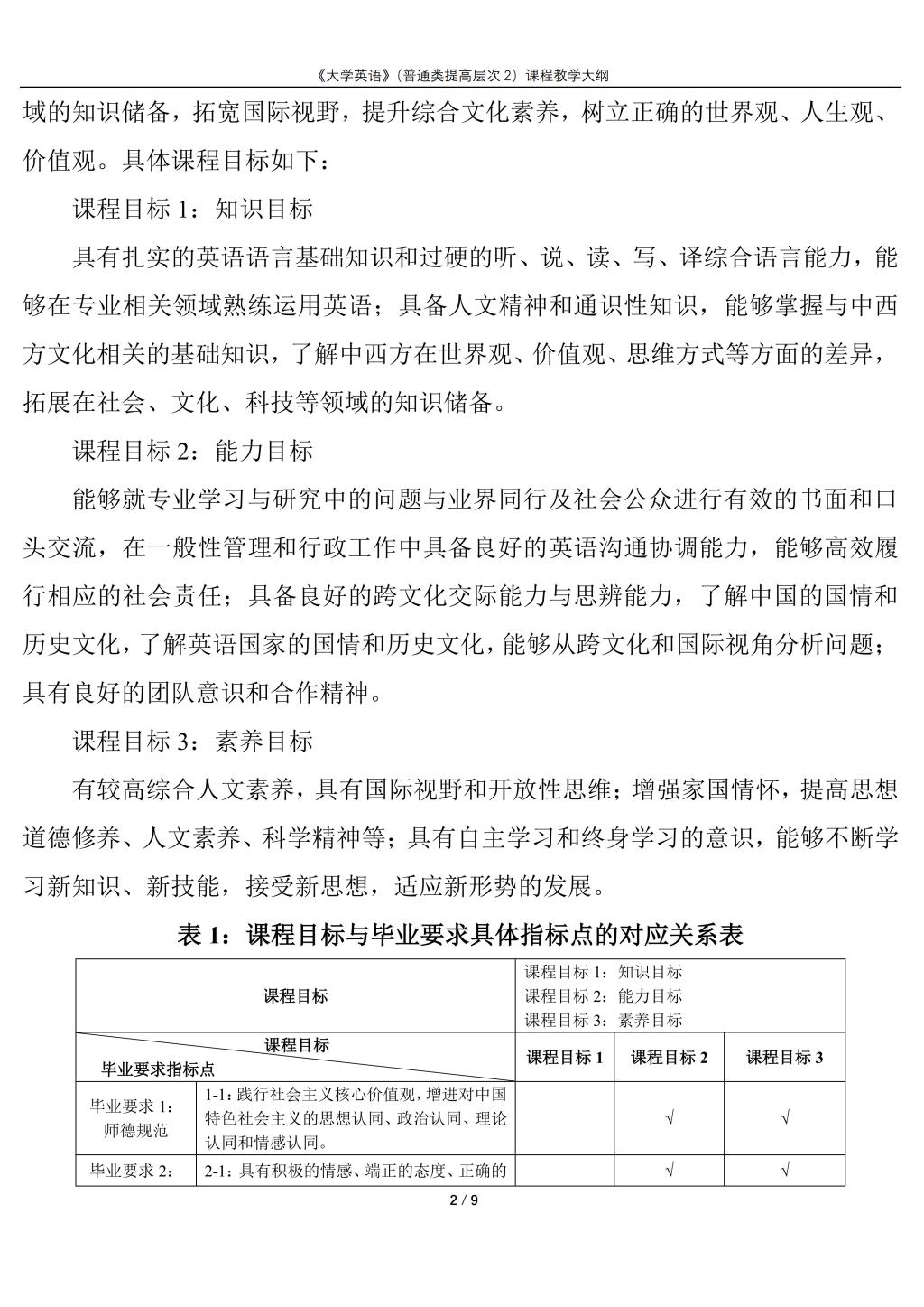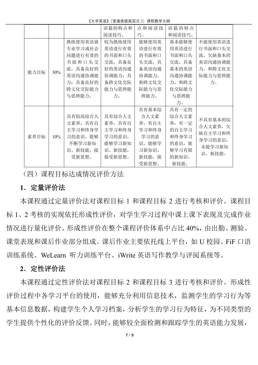 大学英语(普通类提高层次2)课程教学大纲(2022版)