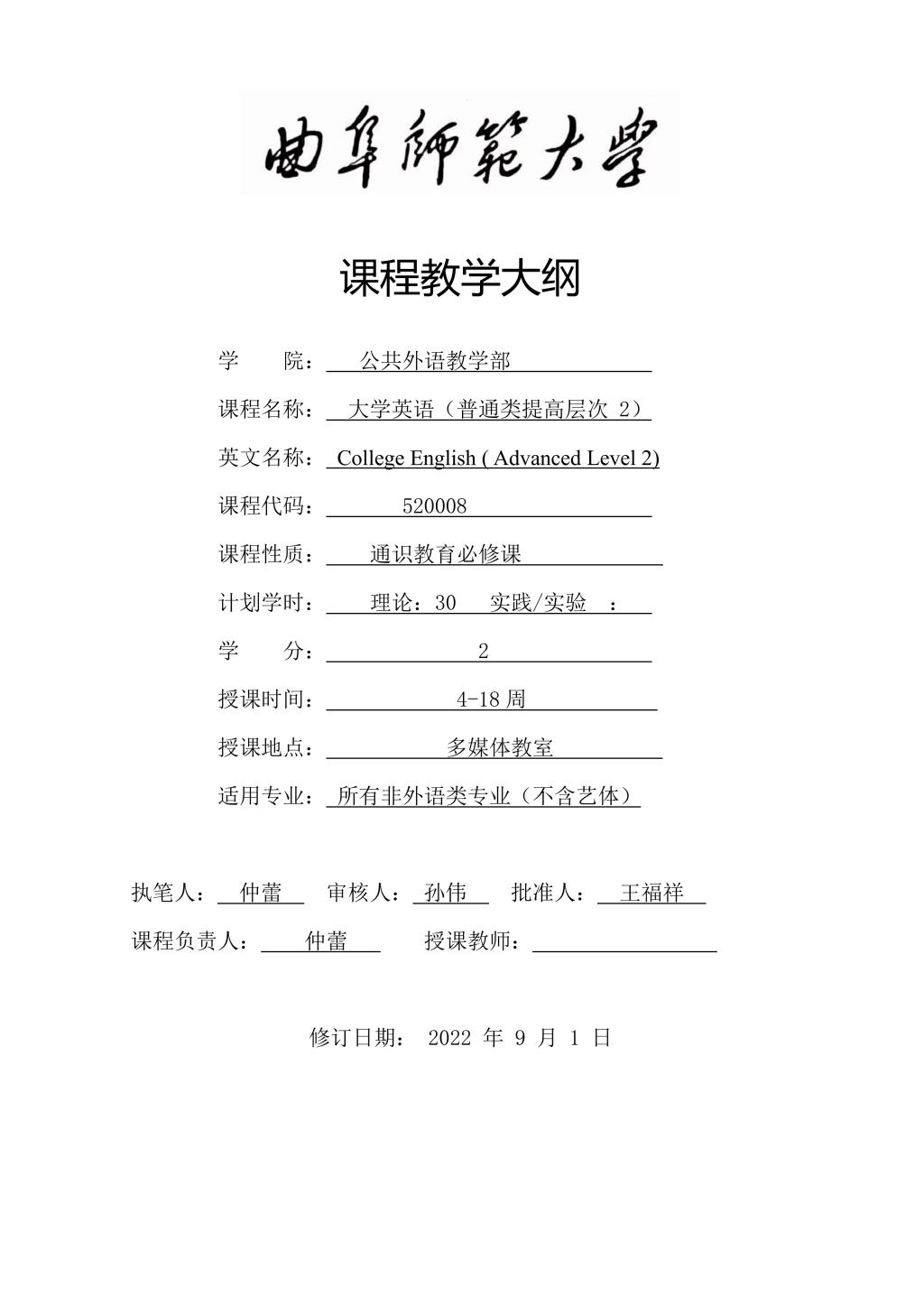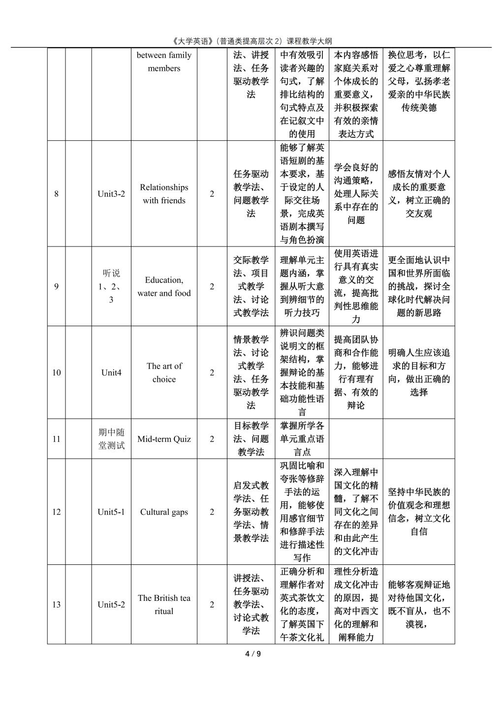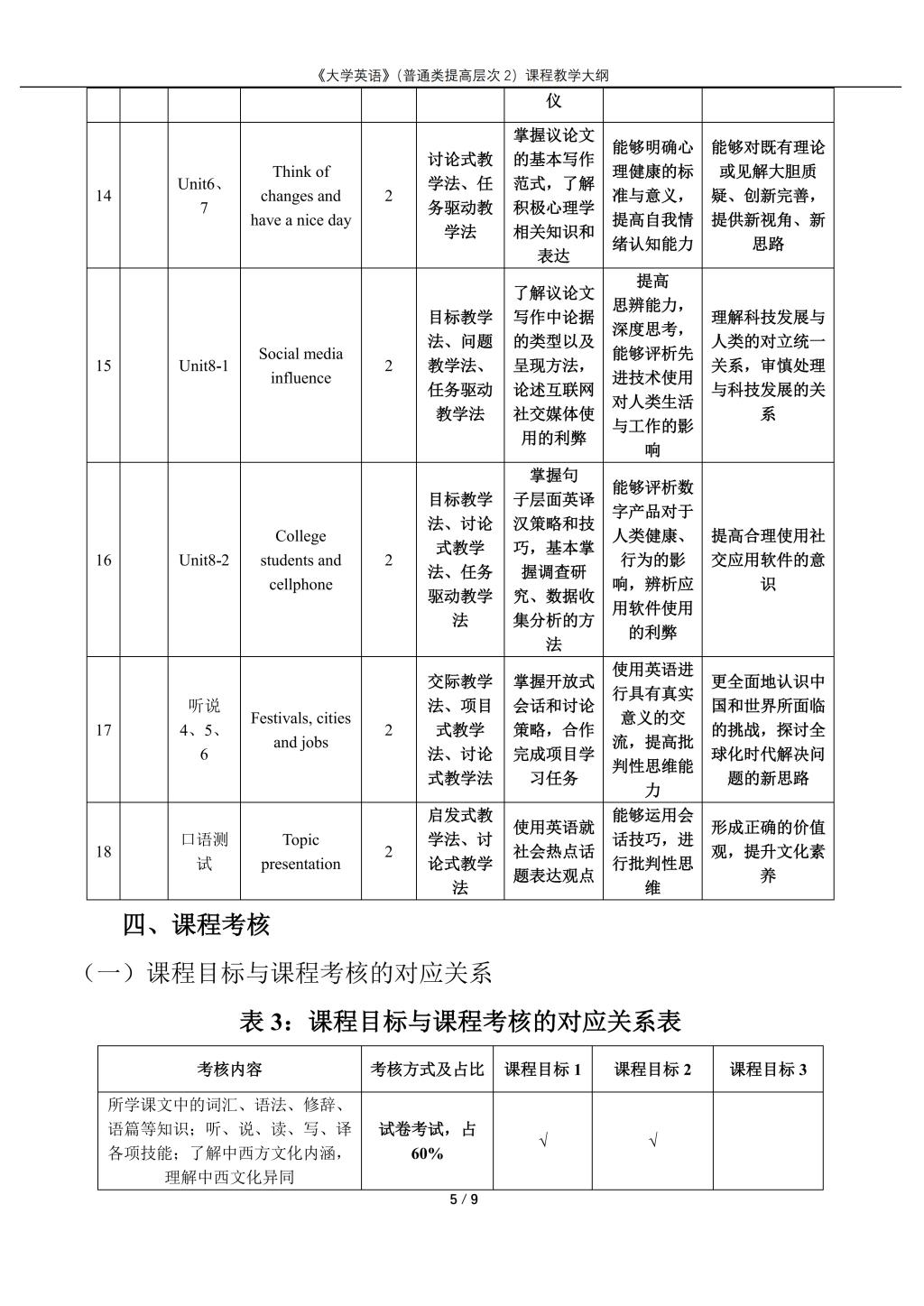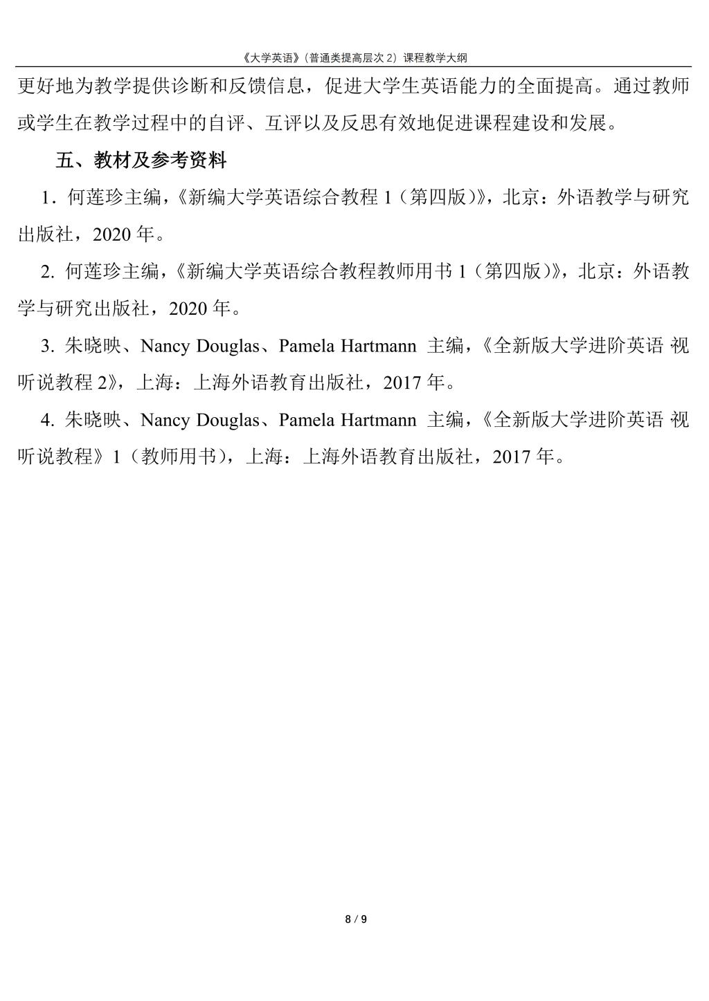 大学英语(普通类提高层次2)课程教学大纲(2022版)