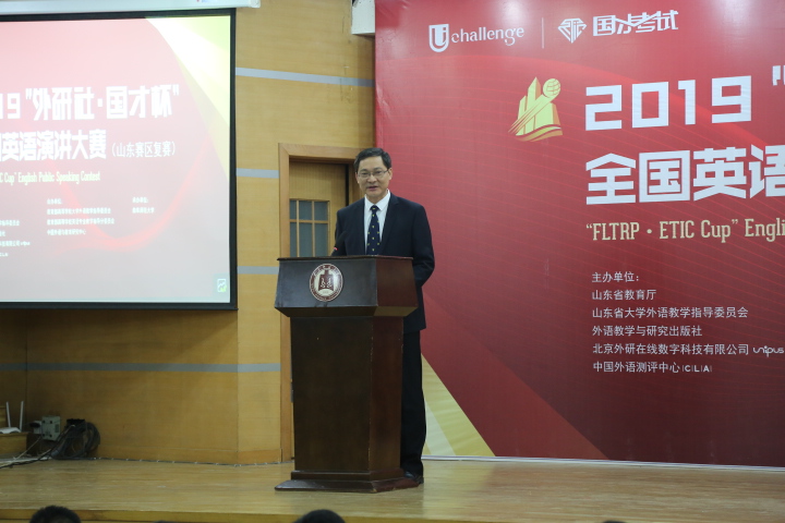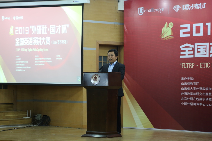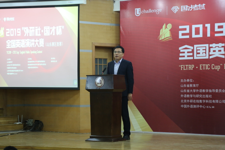 山东省大学外语教学指导委员会主任委员、华体会在线华体会在线(中国)主任王广成教授在致辞中指出:“Uchallenge大学生英语挑战赛”系列,是由山东省教育厅、外语教学与研究出版社等单位联合主办的一项公益赛事,“大赛以高远的立意和创新的理念,顺应时代发展大势,聚焦国家时事热点。大赛既是当代大学生展现风采、实现自我的舞台,也是外语教育领域凝聚创新、融通中外的交流媒介。”是唯一纳入“中国高校创新人才培养暨学科竞赛评估项目”的英语竞赛。希望参赛同学在比赛中能够收获赛场经历,学习优秀选手身上的亮点;领悟语言表达魅力,目睹思想碰撞火花;在高手云集的舞台上展现自我、提高自我。作为此次比赛的具体承办者,一定本着公平、公正、公开的原则组织赛事,认认真真、尽心尽力地为大家做好服务。