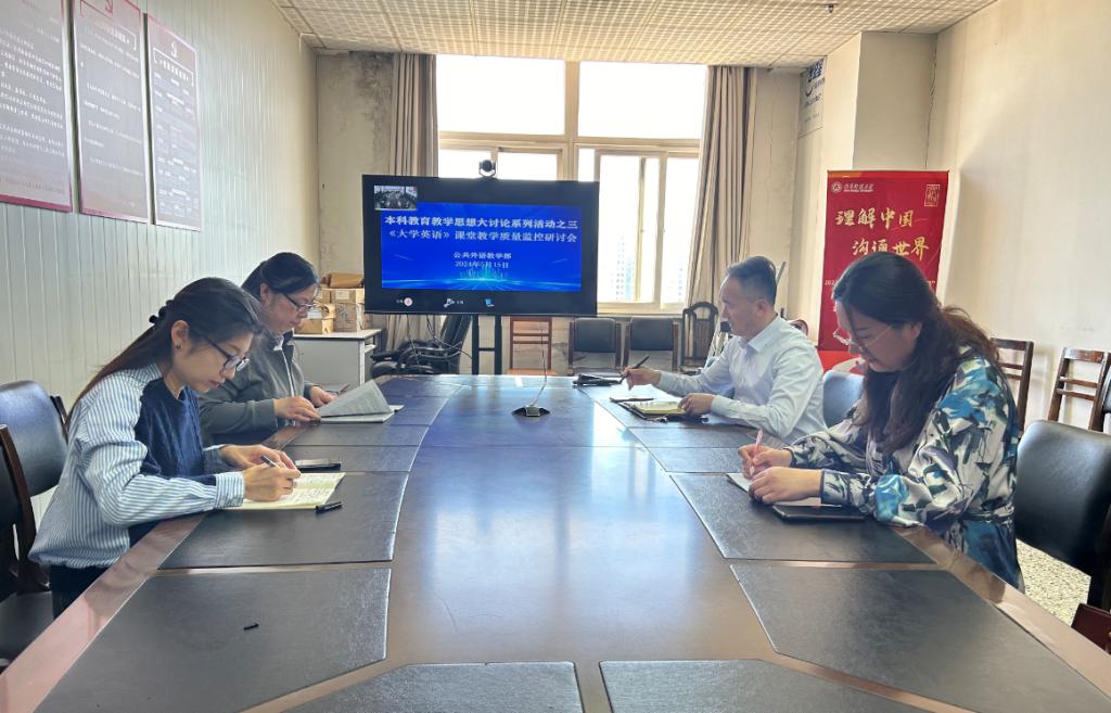 5月15日,华体会在线(中国)召开本科教育教学思想大讨论系列活动之三——《大学英语》课堂教学质量监控专题研讨会。研讨会由华体会在线(中国)主任王福祥主持,教学部领导班子全体成员和两校区教研室主任等业务骨干参加了本次研讨。