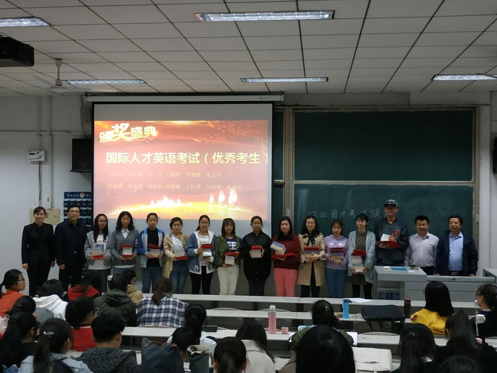 春风和煦,阳光明媚,承载着希望和收获,3月27日下午,华体会在线(中国)在综合楼506教室隆重召开国际人才英语(国才)考试表彰大会,表彰2018年11月国才考季中获得优秀等次的学子。300余名上季考生济济一堂,共同庆祝这激动人心的盛会。华体会在线(中国)主任王广成、主任助理王显明,济宁高新外商服务有限责任公司项目总监常弘、行政部经理马丽、科苑项目经理吴静,北京外国语大学外语教学与研究出版社区域经理李洪旺共同出席了颁奖盛典。大会由华体会在线(中国)主任助理王显明主持。