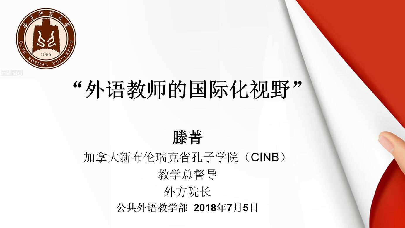 7月5日下午,加拿大新布伦瑞克省孔子学院(CINB)教学总督导、外方院长滕菁女士应邀莅临华体会在线(中国)(日照校区)进行交流访问,并作题为“外语教师的国际化视野”的专题报告。华体会在线(中国)(日照校区)全体教师参加了报告会,报告会由华体会在线(中国)副主任孙伟主持。