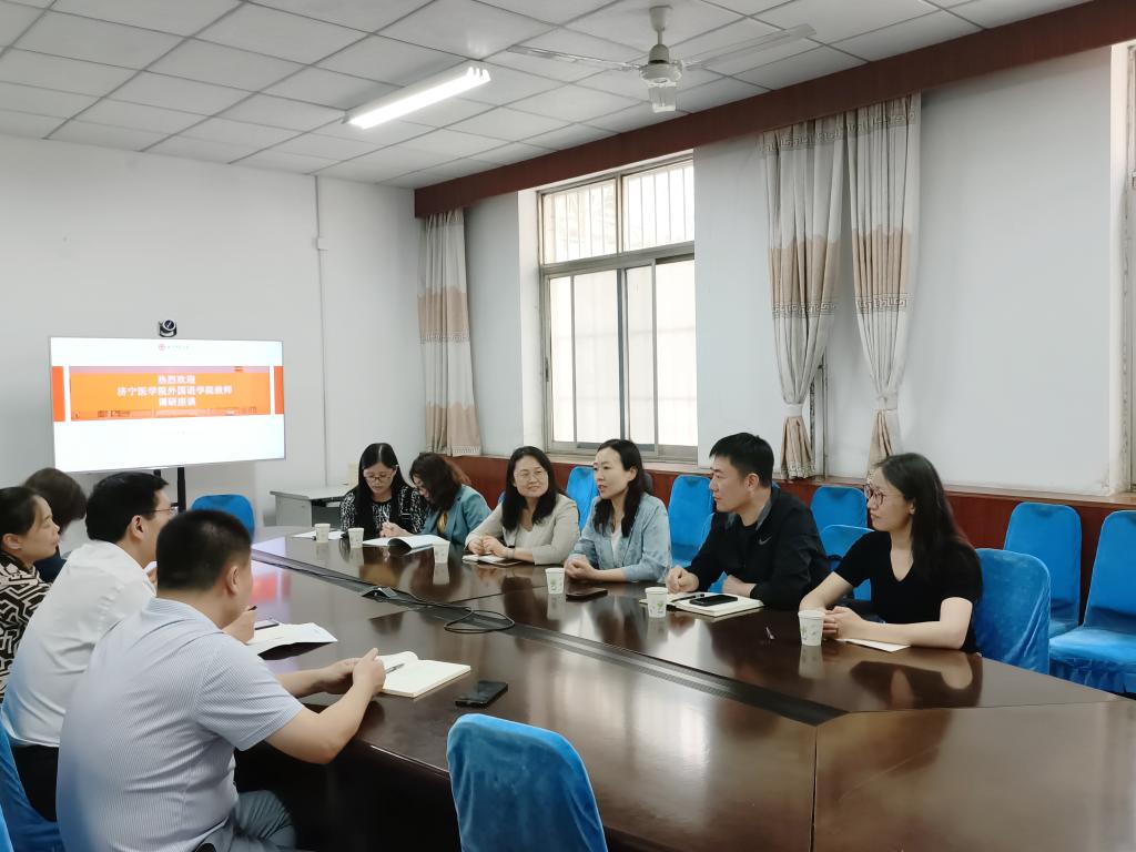 朱敏感谢华体会在线(中国)对其到访交流的支持和帮助,介绍了济宁医学院外国语学院大学英语教学现状及改革情况。作为医学类专业院校,朱敏就大学英语教学的ESP课程建设、专业英语教学等方面进行了深入交流。副书记史飞及副院长褚宏蕊分别就主题教育、大学英语教学、科研及党建工作进行经验分享与交流。随同老师在教学比赛、学生管理及外籍教师聘用等工作进行了深入探讨。朱敏一行表示希望通过此次交流,进一步密切两院往来、深化协作,共同提高办学水平。